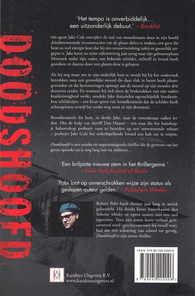 - « Doodshoofd » is een paperback (235x155mm) van 350 pagina's die werd uitgegeven door Karakter in 2013. Oorspronkelijk kwam het boek uit in 2011 in de Verenigde Staten onder de titel « Bloodman » bij uitgeverij Thomas & Mercer.