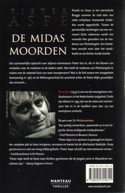 - « De Midas Moorden » is een paperback (215x140mm) van 281 pagina's die werd uitgegeven door Manteau in 2003. Oorspronkelijk kwam het boek uit in 1996 in België onder de titel « De Midas Moorden » bij uitgeverij Manteau.